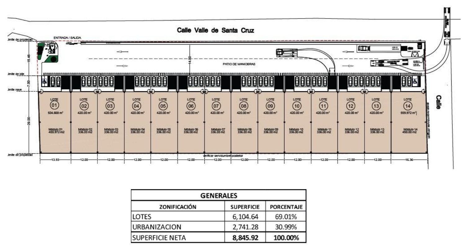 Ejemplo de lotificación para conocer la viabilidad industrial en el terreno.